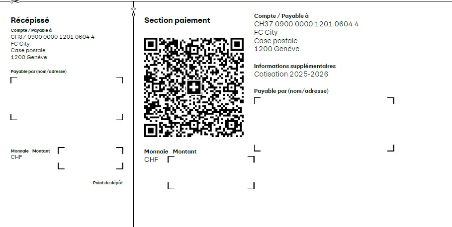 Le tableau ci-dessous présente les montants de cotisation selon les catégories. Le paiement s’effectue via le QR code ci-dessous. Veillez à bien mentionner le nom, prénom de l’enfant et son équipe lors du virement.